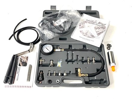 This kit of special tools and hardware will let you do this critical doctor's exam yourself. And you will save lots of $$$ - maybe even tons. This exam would cost you $300 to $400 at a shop. You will also save $$ over buying these items individually, and you could save thousands when this kit prevents you from purchasing the wrong car! The horror stories we hear regularly about bad diesel purchases are preventable. PLEASE NOTE: colors may vary: The compression tester now comes in a grey case and the valve wrenches are made using USA Wright black oxide combination wrenches.