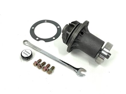 8/2022 Update: We have modifed a new wrench for this kit so it may not look the same as that shown in previous YouTube videos, but it will do the same or even better job! We do sell the water pumps individually, but we decided to offer this complete kit to make a diesel pump installation go easier. If you have rounded off bolts and no special wrench, removing the fan from the front of the water pump can be a REAL test of your patience.