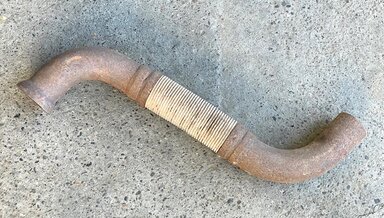 If you have a 617 turbo diesel you could have a broken flex down pipe. This is the pipe that comes out of the back of the engine. There is no good way to fix this. You will need to replace with new or good used.