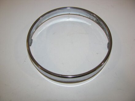 Very nice outside chrome, no dents. May or may not be some very light surface rust on the inside but if there is, it is not visible from. the outside. Fits right or left side. Screws are not included.