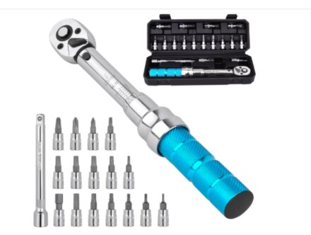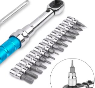 You will love this light torque wrench. Comes with extra bits, an extension, and a case.