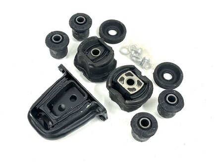 Do you want to make the rear end ride like a new R107 - Then you have to replace the key suspension rubber parts that attach the rear suspension to the car. This kit has the parts you need. No instructions.