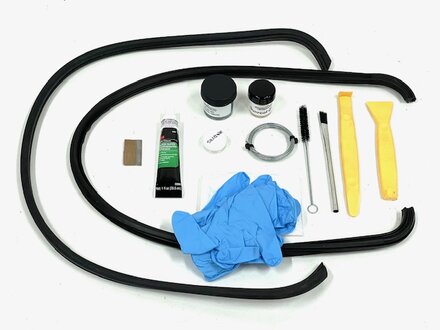 These old power non-tilting sunroofs are now 40-plus years old. These are specifically the sunroofs that used the later style round motor. This is a full-service kit with a new front and rear seal (we are unable to obtain quality side seals) and supplies and lubricants to lubricate the sunroof motor drive, the sunroof cable, and the sunroof sliding mechanism with special Mercedes grease.