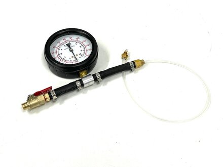In early 2025, we introduced version 2. We are now only selling the fully assembled and tested unit here in our shop. We install the airmatic fitting on the end of the hard line for you, READY to attach to the airmatic component you are testing. This fitting must go into the strut's top for pressure testing. The fitting is 8mm in diameter. You may be able to adapt this tester to a larger fitting, but you would be on your own. Comes with limited video instructions. You will need a compressor that can produce a minimum of 90 PSI.