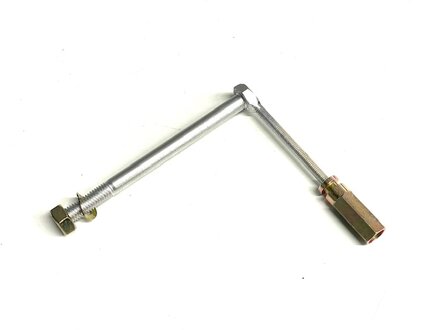 This is a very common failure item on the OM617 turbo diesel engines. There are two reasons why it bends or strips. 1) The original threaded adjusting rod is made of a VERY soft metal. 2) Owners or mechanics do not loosen the three large mounting bolts BEFORE adjusting the tension on the V-belts.  Kent designed this improvement and now makes it in our own shop with a much stronger threaded rod.