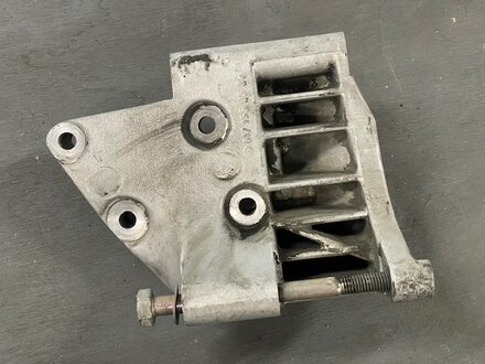 Last one we have. An excellent used bracket that bolts to the engine block to mount the alternator. The bolts in this bracket often get frozen to the aluminum and require cutting. The only solution is to get another bracket as shown here. Not difficult to install. Front lower pulleys will have to come off to get to the "hidden" bolt. This is the actual part you will receive.