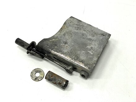 Good used bracket as shown. Not bent and no cracks. Threads are good on the threaded adjustment rod. Adjusting nut included.