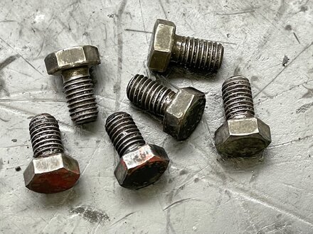 Excellent used set of torque converter bolts as shown. These bolts are critical, and I often see them replaced with improper bolts. There are six that are required to hold the flex plate to the torque converter on all Mercedes diesel engines from 1969 to 1985. These are original high-strength bolts. Must be installed with washers (not included) and recommend using blue thread locker as well.