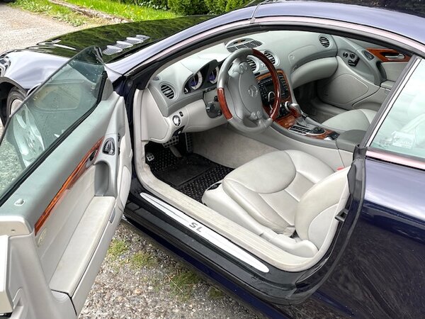 Beautiful color combination. Cobalt blue metallic with oyster grey leather interior. No dents, no door dings, no rust anywhere. Super clean engine, as you can see, and interior to die for. Folding hardtop that is working flawlessly. This has been a "star" on Kent's YouTube channel. kentscars kentssls