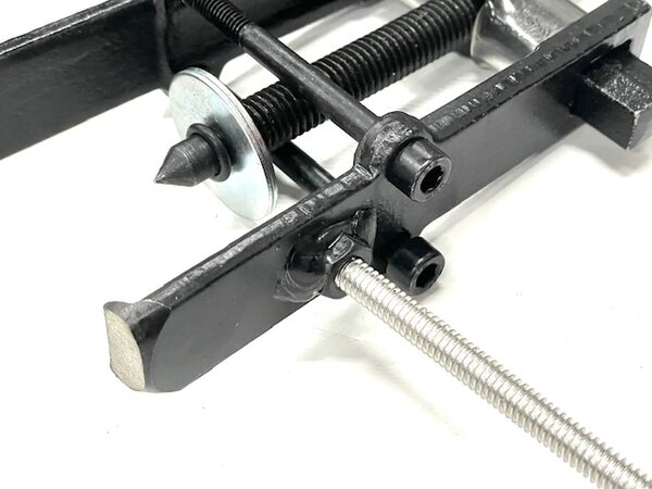 PLEASE NOTE: This puller is custom-modified and is made to order. It has to be narrower than the diesel version. PLEASE allow three to four days before it can be shipped to you. Kent modified this puller and developed a procedure to remove the front crank seal race so the job could be affordable for the DIY mechanic. This costs less than half the cost of the factory tool. It is not as fast or as "slick" as the "big boy," but it gets the job done on most front crank seal races on GAS engines from the mid-1960s to the mid-1980s. Watch the video below to learn more.