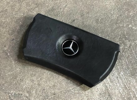 Excellent used horn pad with good rubber and emblem. Fits 123 and 126