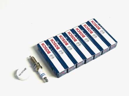 This kit includes EIGHT correct Bosch spark plugs and a small container of silicone grease to put on the ends of the spark plug wires. This is not a difficult job. In fact, it is one of the easiest spark plug changes you may ever do. No need to pay $500 for a shop to replace your spark plugs. Watch the video below and see how fast it can be done.