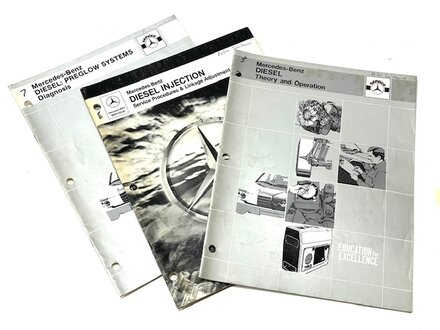 For the size of these three manuals, the good usable information inside is humongous. If you have one of these diesels, these will get you up to speed and help you get your diesel running better. These were delivered to factory dealerships to help their mechanics with pre-glow systems, diesel fuel injection systems, and diesel engine theory and troubleshooting. This set is very hard to find.