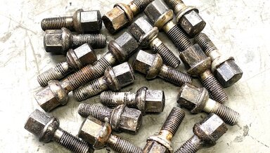 $44.00 Set of 20 - Factory 14 inch Alloy Wheel Lug Bolts - USED NOT for wheels with hubcaps. Used on W111, W108, W109, W116, R107, W114, W115, W123 and early to 1985 W126 aluminum bundtcake wheels.